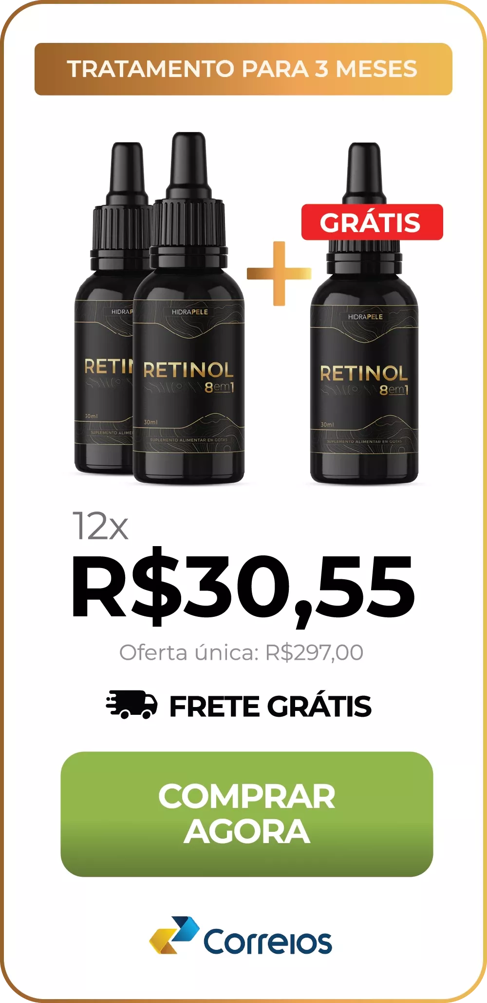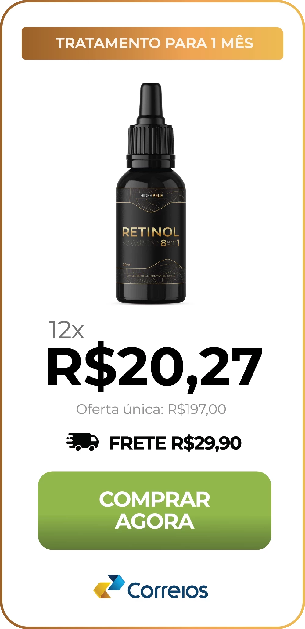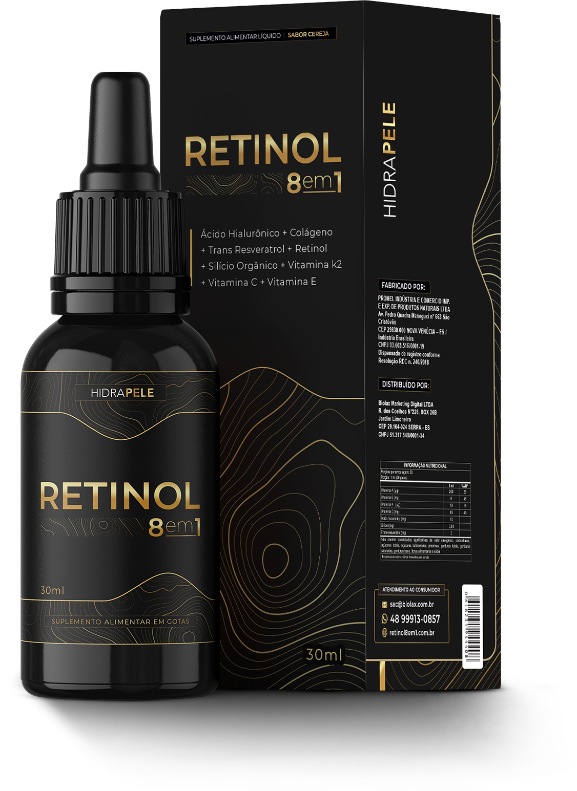 O retinol é um derivado da vitamina A que possui a função de estimular a renovação celular, auxiliando na prevenção e no tratamento do envelhecimento